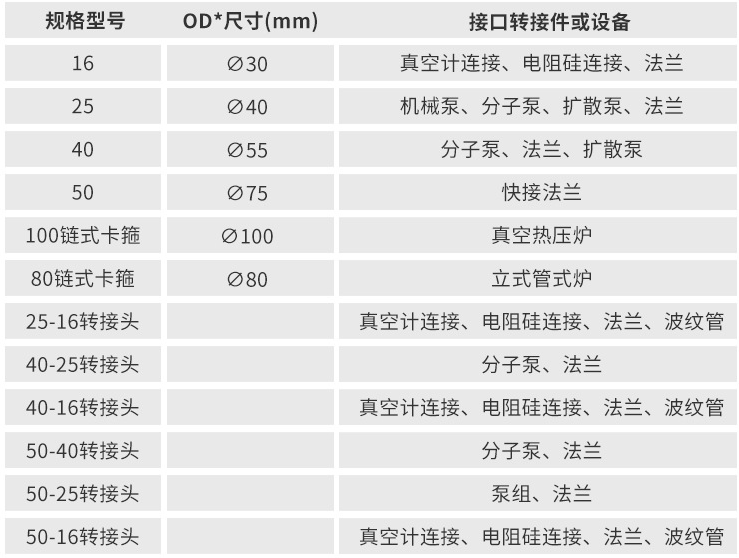 型號尺寸:各種型號適用于管徑為30/40/55/75/80/100mm等多種型號