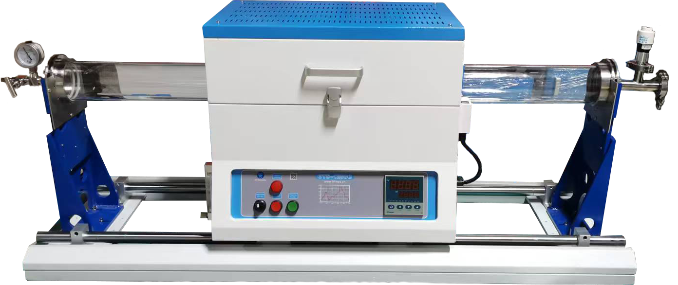 ?爐管:高純石英管φ100*1000mm,鍍鉻鋼制成的雙滑軌,手動滑軌長度1400mm。