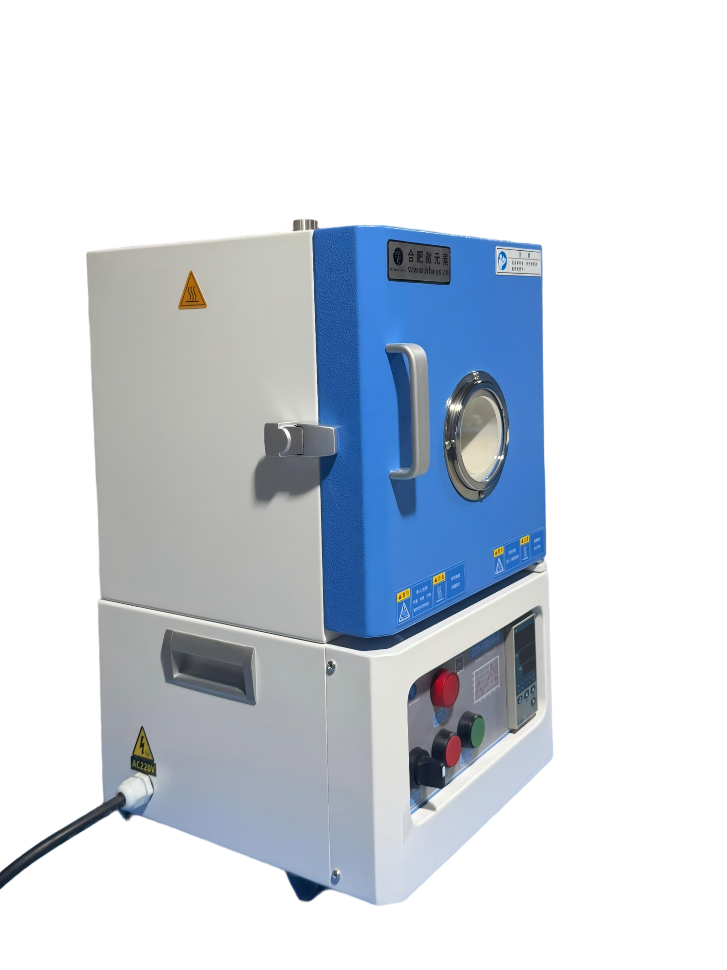 主要產品參數 | 電源:220V 50/60Hz 額定功率:2.6 KW 最高工作溫度:1200℃(<0.5 h) 連續工作溫度:1100 ℃ 推薦升溫速率:≤10℃/min 加熱區:W150mm*H150mm*D180mm;加熱區空間:4L 熱電偶:K型 |