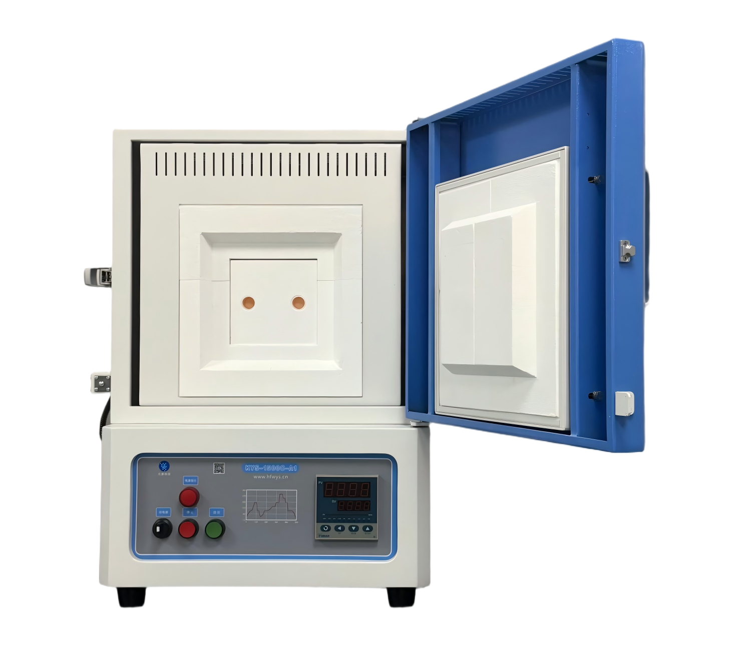 ?爐體結構:采用雙層殼體結構,并帶有風冷系統;爐膛采用高純氧化鋁纖維材料,最大程度的減少能量損失;內爐膛表面涂有美國進口的高溫氧化鋁涂層,可以提高反射率及設備的加熱效率,同時也可以延長儀器的使用壽命,帶有過熱和斷偶保護;爐膛內兩面加熱,加熱速率快,溫場均勻;爐門配有安全限位開關,并且爐門上安裝有一個保護門閂,防止意外開啟及爆炸。